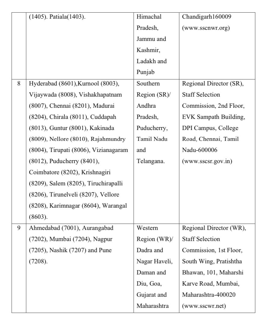 The details of the nine Regional Offices of the Commission along with the Examinations Centres located under their jurisdiction are as follows: